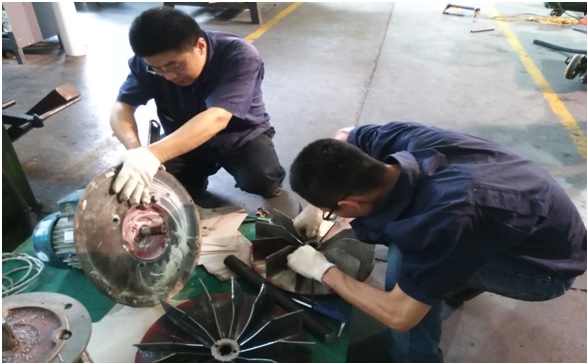 但是,維修過程并沒有就此結束,緊接著的是吊滾筒。“由于整個龍門架只能斜著擺放,這給滾筒一個側向的拉力,要想順利放進去,必須要一個人反方向抵消拉力,稍有不慎就可能撞傷軸頭。”令李欣濤欣慰的是,大家齊心協力,經過一個小時的奮戰終于吊出滾筒,迅速拖回設備科更換新軸。