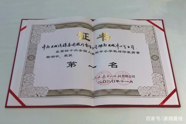 11 月 22 日,第 40 次全國人教版中小學(xué)教材印裝質(zhì)量檢測(cè)工作會(huì)議在廣西南寧召開,中南出版?zhèn)髅郊瘓F(tuán)股份有限公司湖南出版中心分公司蟬聯(lián)全國人教版中小學(xué)教材印裝質(zhì)量檢測(cè)第一名,這也是繼 2008 年獲得全國教材質(zhì)量檢測(cè)第一名后,湖南第三次獲此殊榮。